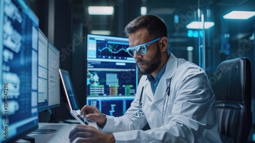 Innovative Research Scientist Analyzing Data in a High-Tech Lab Environment