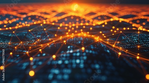 Innovative technology network with glowing paths