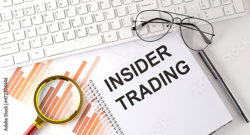 INSIDER TRADING text written on a notebook with keyboard, chart,and glasses
