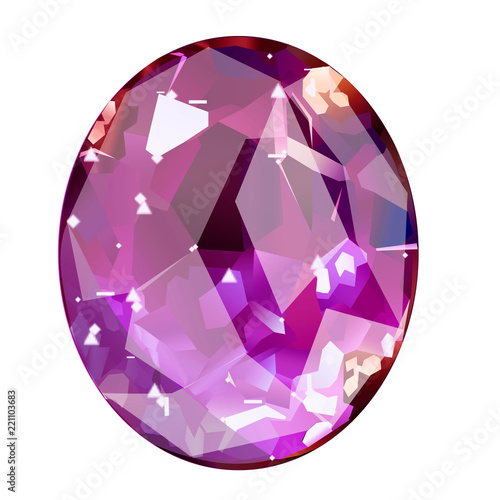 Insulated oval pink gemstone on white background..