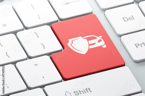 Insurance concept: Car And Shield on computer keyboard background