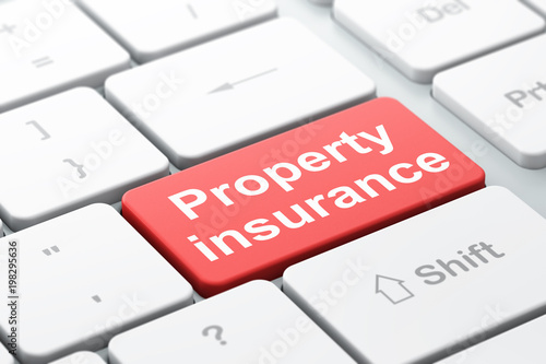Insurance concept: computer keyboard with word Property Insurance, selected focus on enter button background, 3D rendering