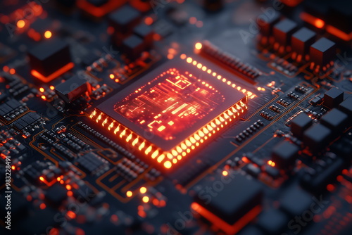 integrated microchip technology abstract, Electronic circuit board close up.