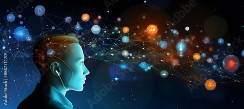Intelligent customer interaction analytics AI depicted in a poster where artificial intelligence analyzes call recordings and chat logs to uncover insights and improve strategies
