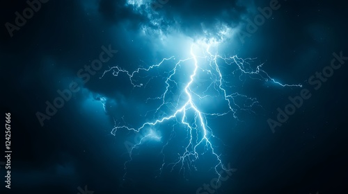 Intense Blue Lightning Storm at Night