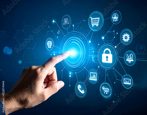 Interactive Digital Security System Hand Interacting with Secure Technology Interface