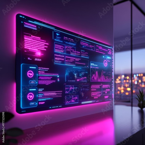 Interactive holographic UI toolkit, dynamic design flows, modern tech room