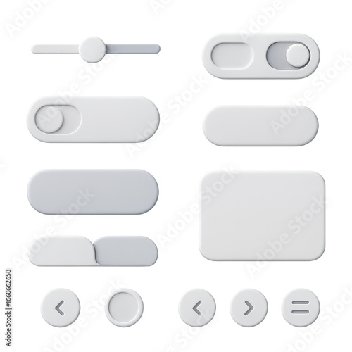 Interactive UI Elements: A selection of sleek, minimalist user interface elements, designed for modern applications. Featuring a clean, subtle design.
