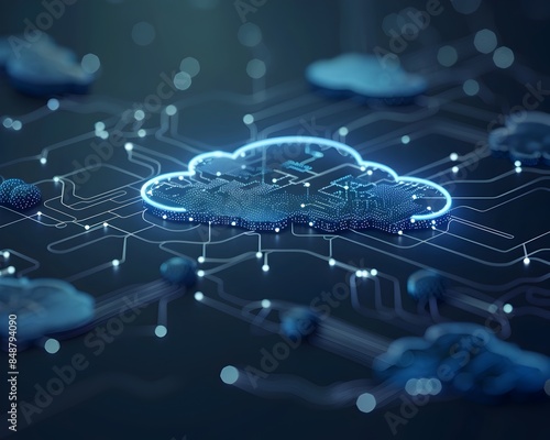 Interconnected Cloud Network Diagram Showcasing Data Pathways and Computing Systems
