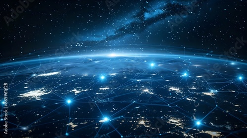 Interconnected Global Network with Glowing Planet Earth in Outer Space