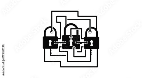 Interconnected locks and keys symbolize complex security systems and data protection.