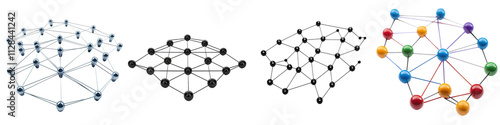 Interconnected network of digital communications and technology concepts with abstract graphic patterns nodes