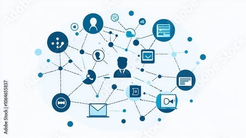 Interconnected network of digital icons representing various communication channels and tools for remote work efficiency.
