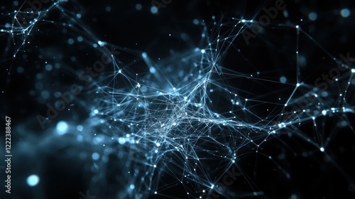 Interconnected nodes create a dynamic network glowing against a dark backdrop, illustrating complexity