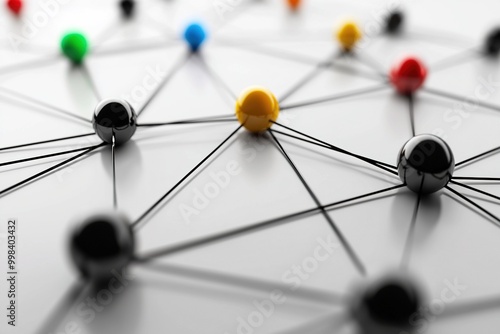 Interconnected nodes with colored points representing network management and connectivity. Generative Ai
