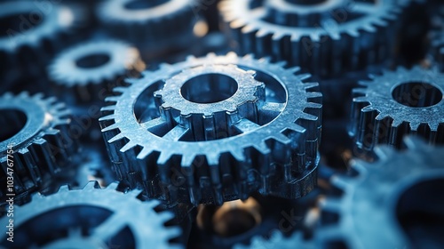 interlocking gears with blue hues representing the concept of c programming language symbolizing the intricate and precise nature of coding and software development.image
