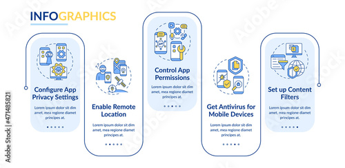 Internet searching tips vector infographic template. Data presentation outline design elements. Data visualization with five steps. Process timeline info chart. Workflow layout with line icons
