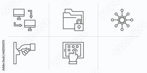 internet security outline icons set. thin line icons such as local network, insecure, data locked, https, fingerprint scan, interactive vector.