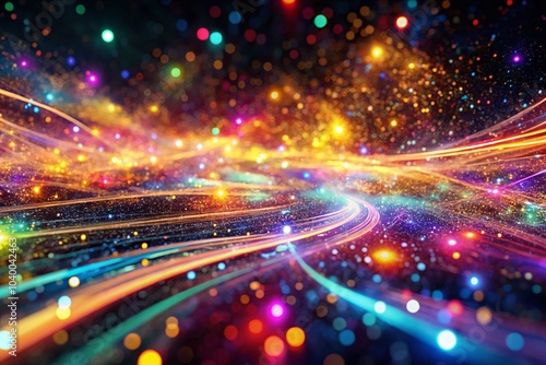 Interstellar Data Stream: Vivid Tilt-Shift Visualization of Neon Lights Transmitting Information Through Space-Time
