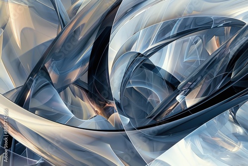 Intricate abstract design with a mix of sharp angles and soft curves, incorporating metallic textures and bold contrasts.