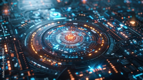 Intricate futuristic circuit with central glowing core