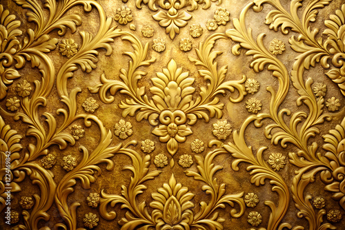 Intricate Golden Floral Pattern. Decorative Wall Texture