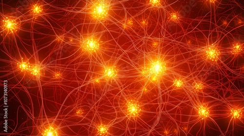 Intricate neural pathways depicted in an abstract pattern with connecting nodes, representing data flow and interconnectedness, perfect for tech visuals