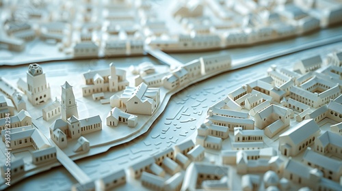 Intricate Origami City Map with Detailed Paper Buildings and Streets