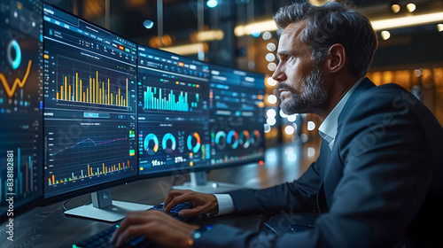 Investor see to screen in stock market and analysis for take profit concept, Photo by AI generative.