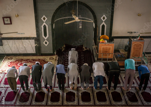 Iranian shiite prayers in a mosque, Golestan province, Karim ishan, Iran