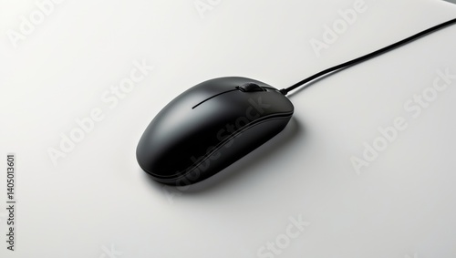 Isolated black computer mouse against a background. Space. Overhead view (flat lay)
