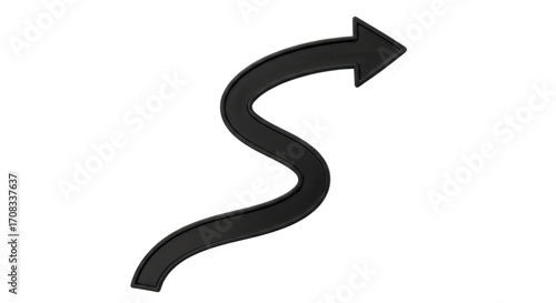 Isolated black curvy arrow sign, direction indicator for navigation, wayfinding, pointer