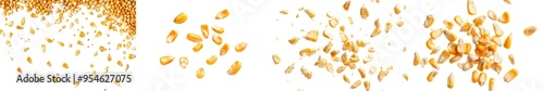 Isolated corn seed falling against a white background.