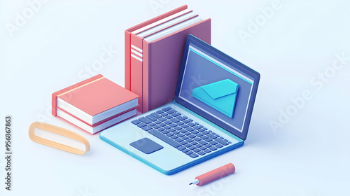 Isolated Laptop and Textbook Vector concept as A clean isolated vector image featuring a laptop and a textbook symbolizing online education with clear wording to represent e learning. The elements are