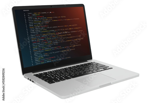 Isolated Laptop Computer Displaying Source Code