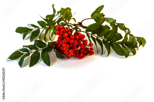 Isolated on white background rowan branch with red berries