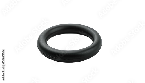 Isolated, perfectly circular rubber ring floating against a solid black background. Smooth, matte texture with subtle highlights