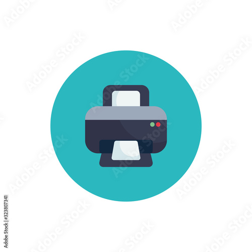 Isolated printer with data document flat block style icon vector design