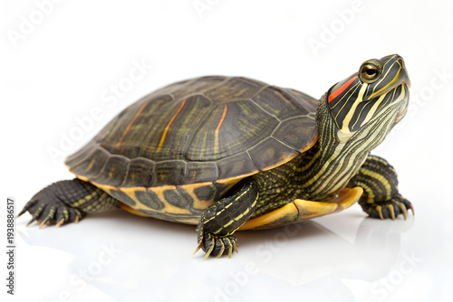 Isolated Red-Eared Slider Turtle with Detailed Shell Pattern