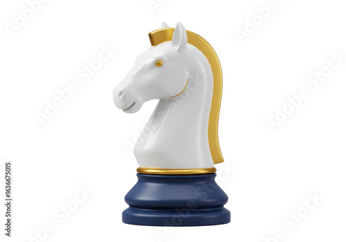Isolated Sleek White Knight Chess Piece Symbolizing Strategy and Elegance