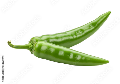 Isolated Two Green Chili Peppers Transparent Background in a Studio Shot