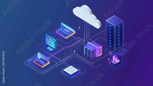 isometric a futuristic data network showcasing edge computing working in tandem with cloud systems to process information instantly