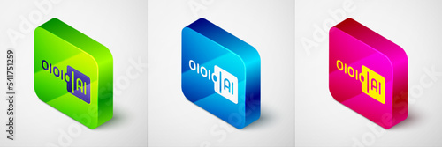 Isometric Binary code icon isolated on grey background. Square button. Vector