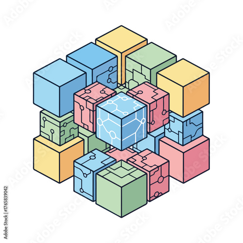 Isometric Cube Design with Circuitry Elements and Colors