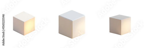 Isometric cubes, white boxes, geometric shapes, modern design, rendering