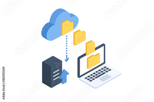 Isometric data synchronization between cloud storage, local server, and laptop computer