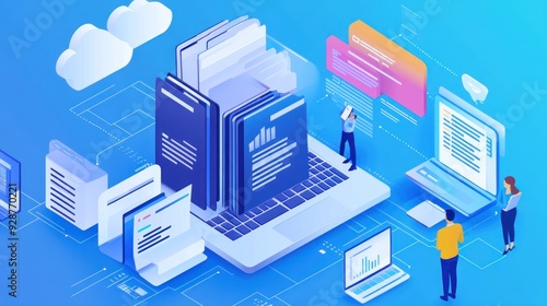 Isometric Illustration of People Working on a Cloud-Based Platform