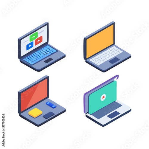 Isometric Laptop Icons Diverse Designs for Digital Projects
