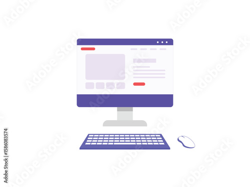 Isometric monitor with website on screen. Computer web with keyboard and mouse. web concept. Web development. Isometric technology