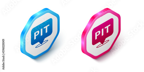 Isometric Pit stop icon isolated on white background. Hexagon button. Vector